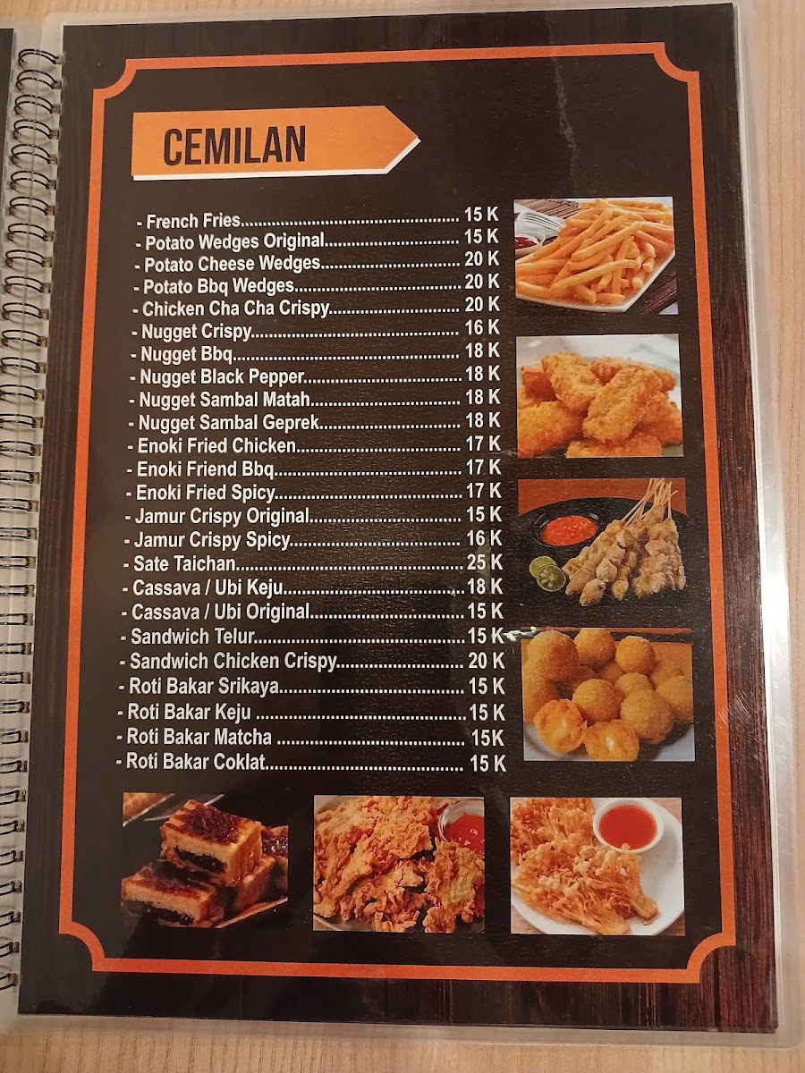- Cemilan: Delight in an array of tempting snacks like Potato Cheese Wedges and Enoki Fried Chicken. Each bite is crafted for flavor and texture, perfect for sharing or indulging solo.